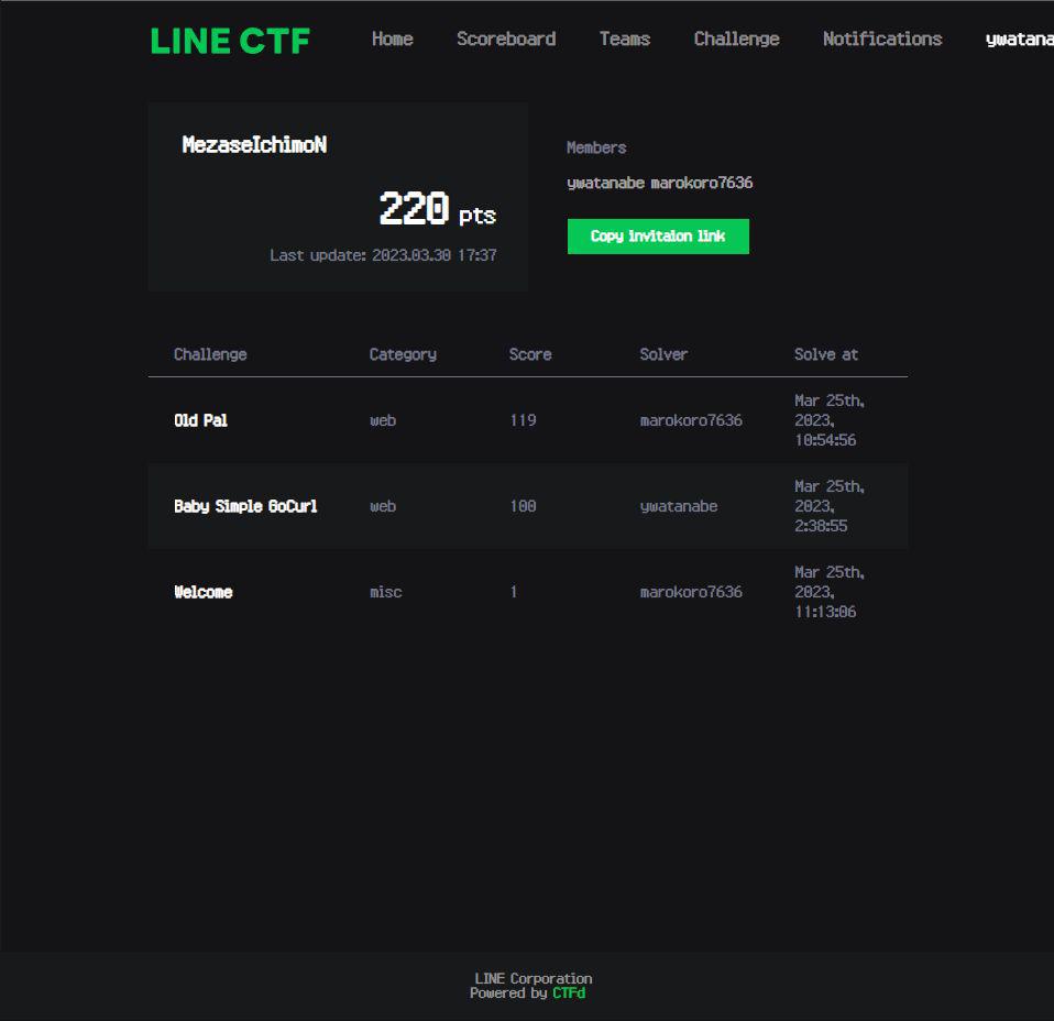 LINE CTF 2023 参加 (結果, 87 / 477 teams)